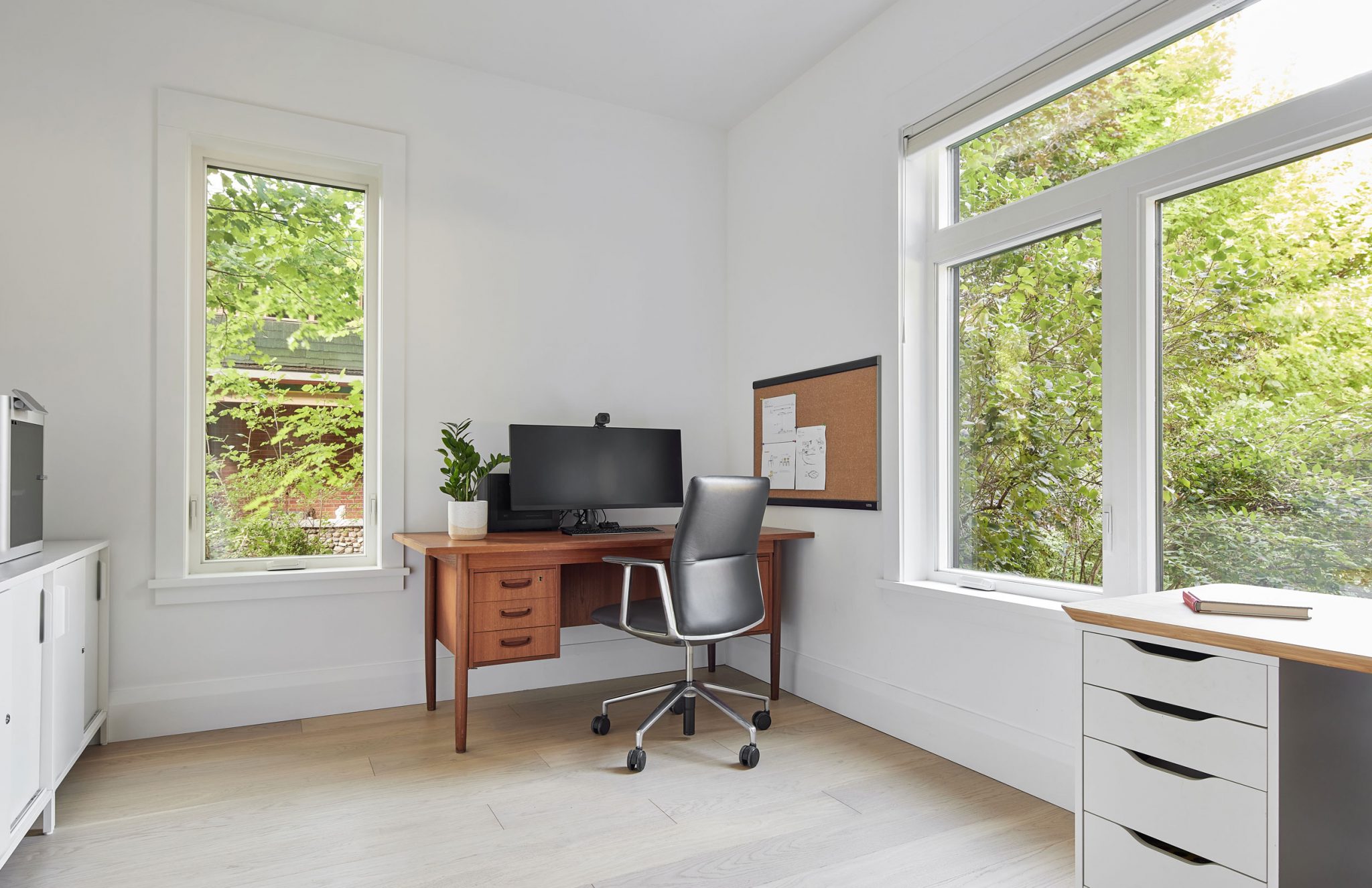 The home is now a merger of old and new, with ease of circulation and a variety of spaces to serve a work-from-home couple and their two young children.