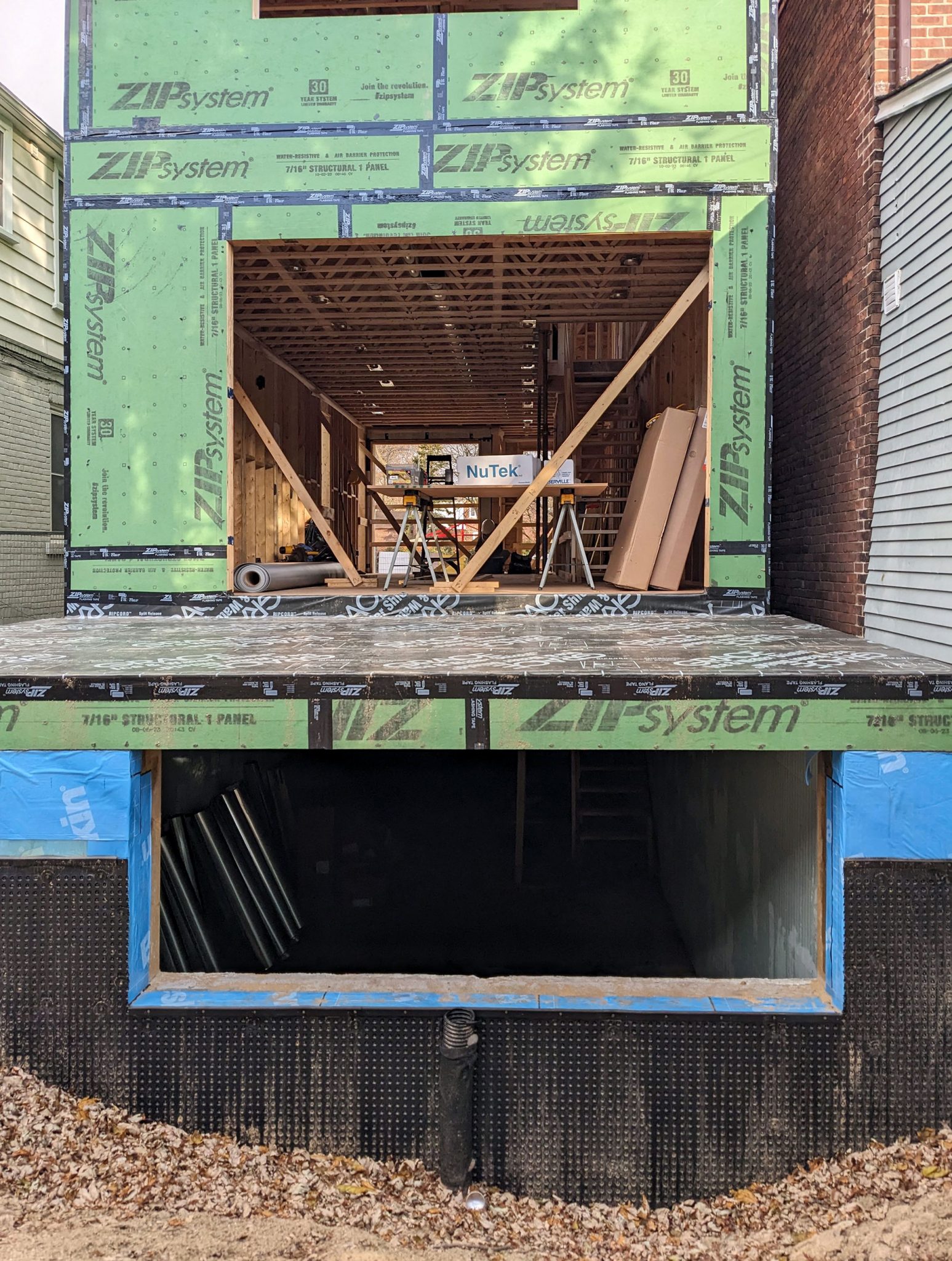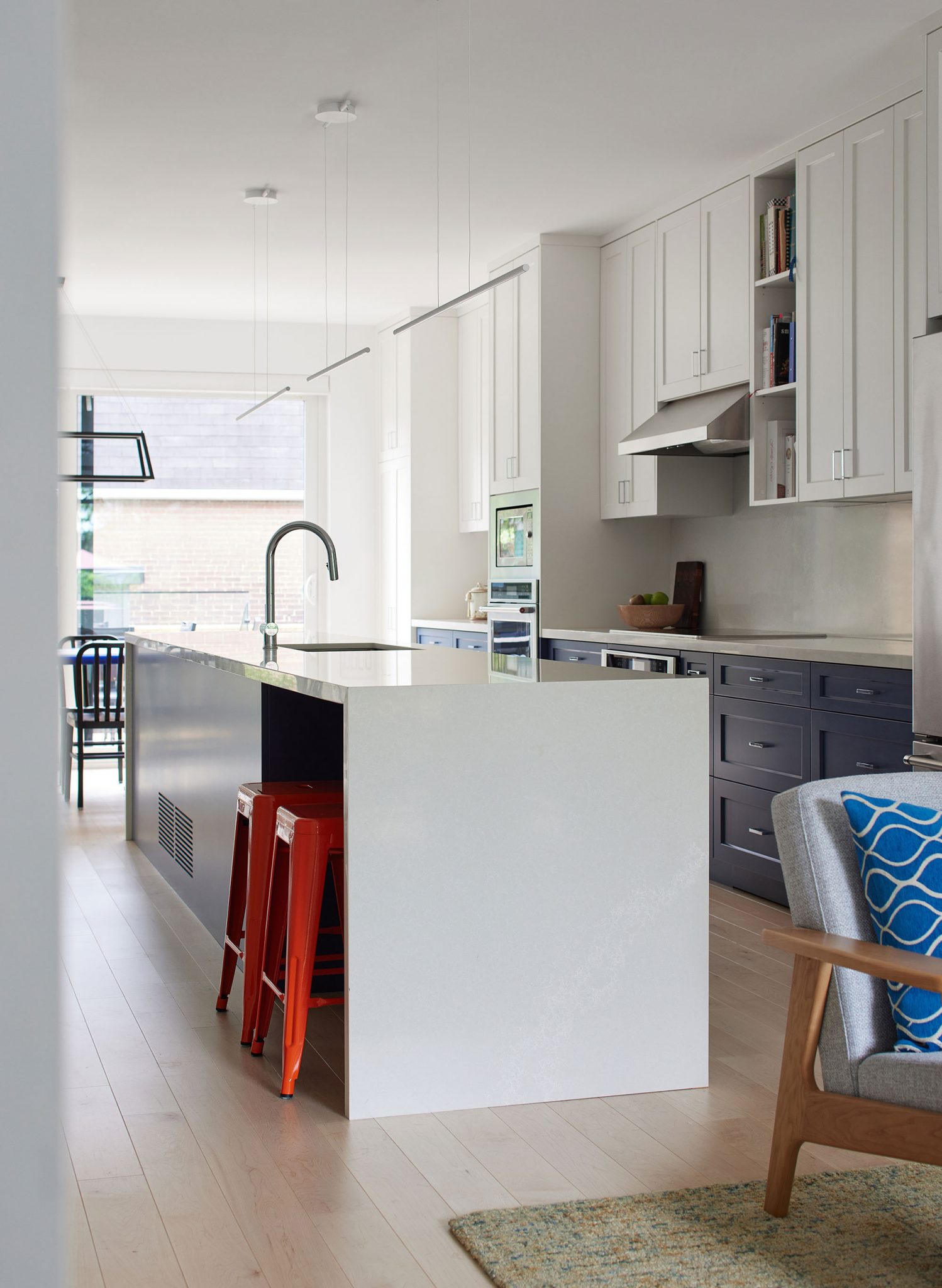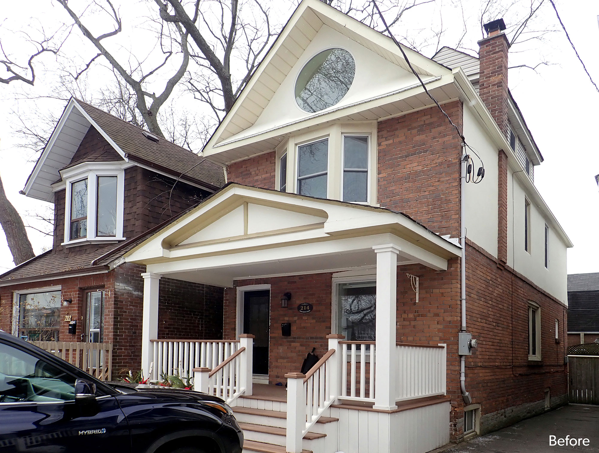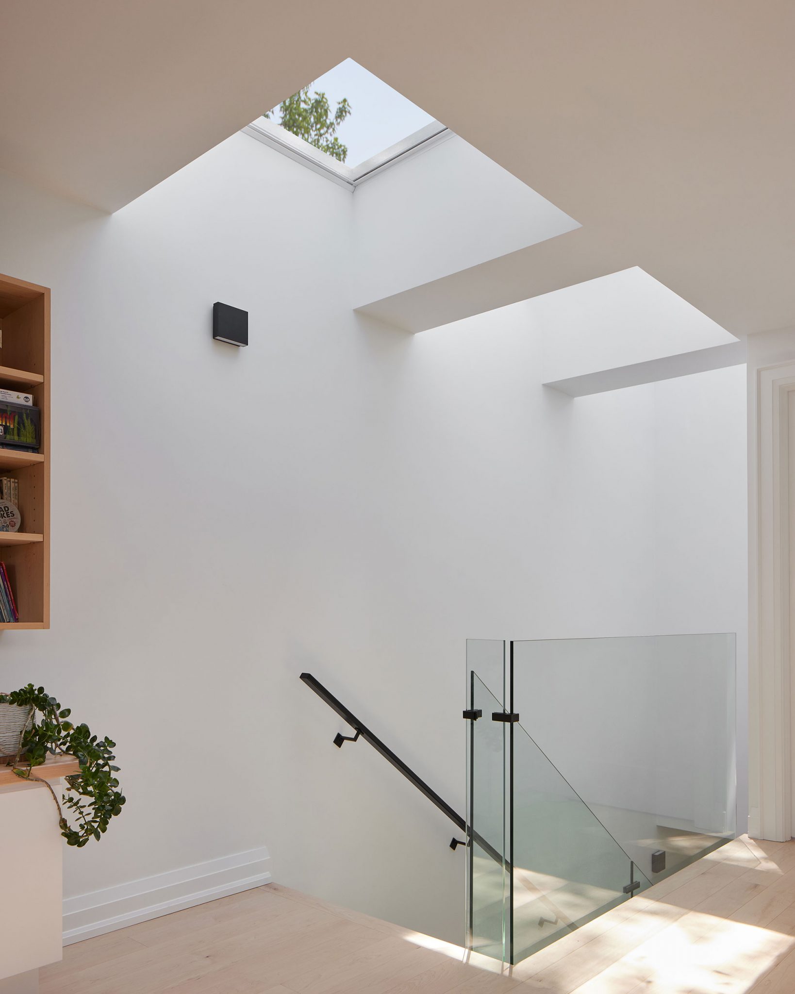 Neighbourhood context and neighbourliness was paramount to our clients. The front of the house echoes the familiar lines and shapes of the surrounding homes. At the back, our clients wanted to align the rear wall of the new house with the neighbouring homes, even though they were allowed to build deeper. It was important to them to preserve a cohesive backyard “streetscape”.