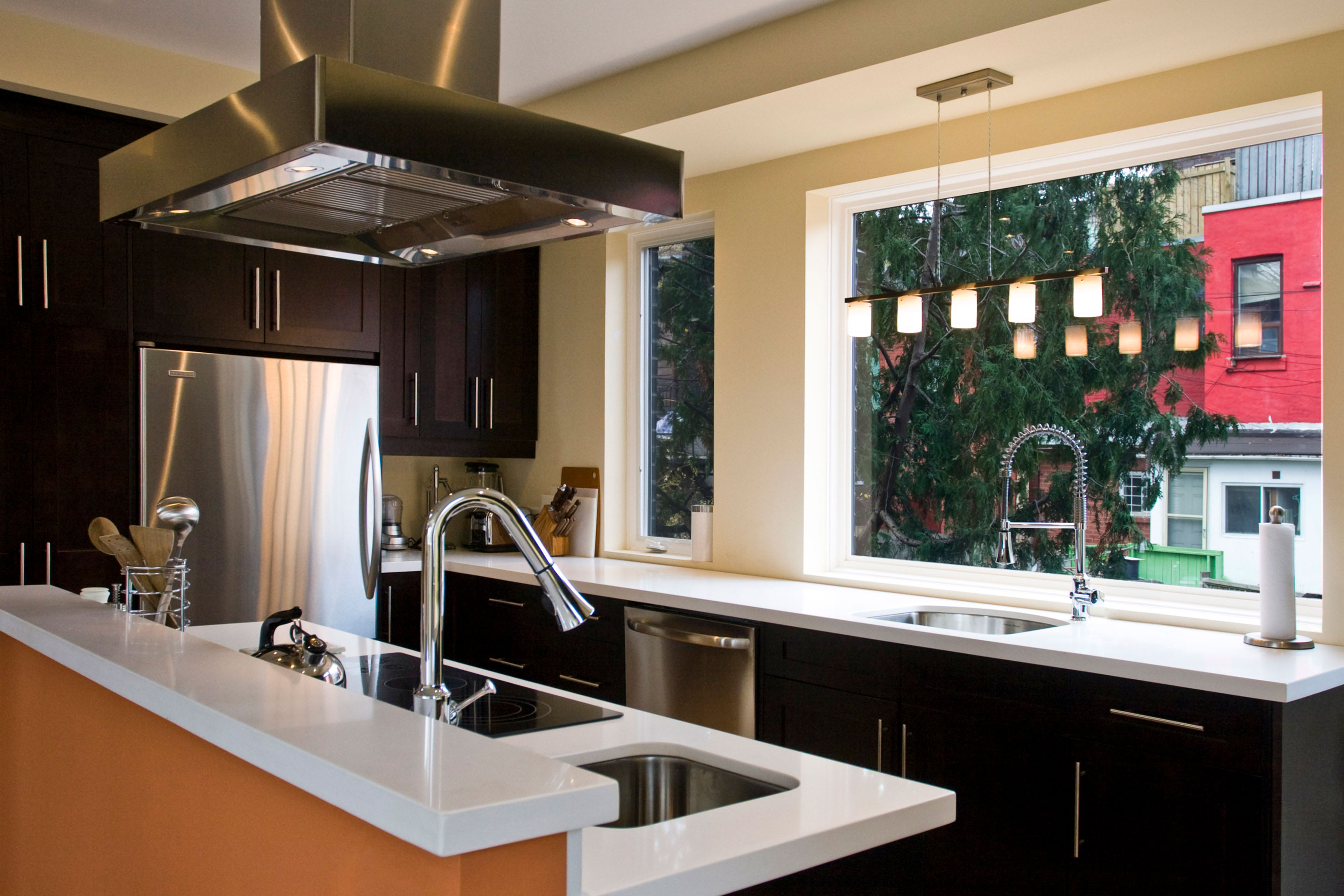 This single-family passive solar house is located in a downtown Toronto laneway, nestled between Chinatown and the Art Gallery of Ontario. The house was inserted onto a tiny site, previously occupied by a two-car garage. The brand new building is a fully detached, full-sized, two storey home with a large, bright basement.