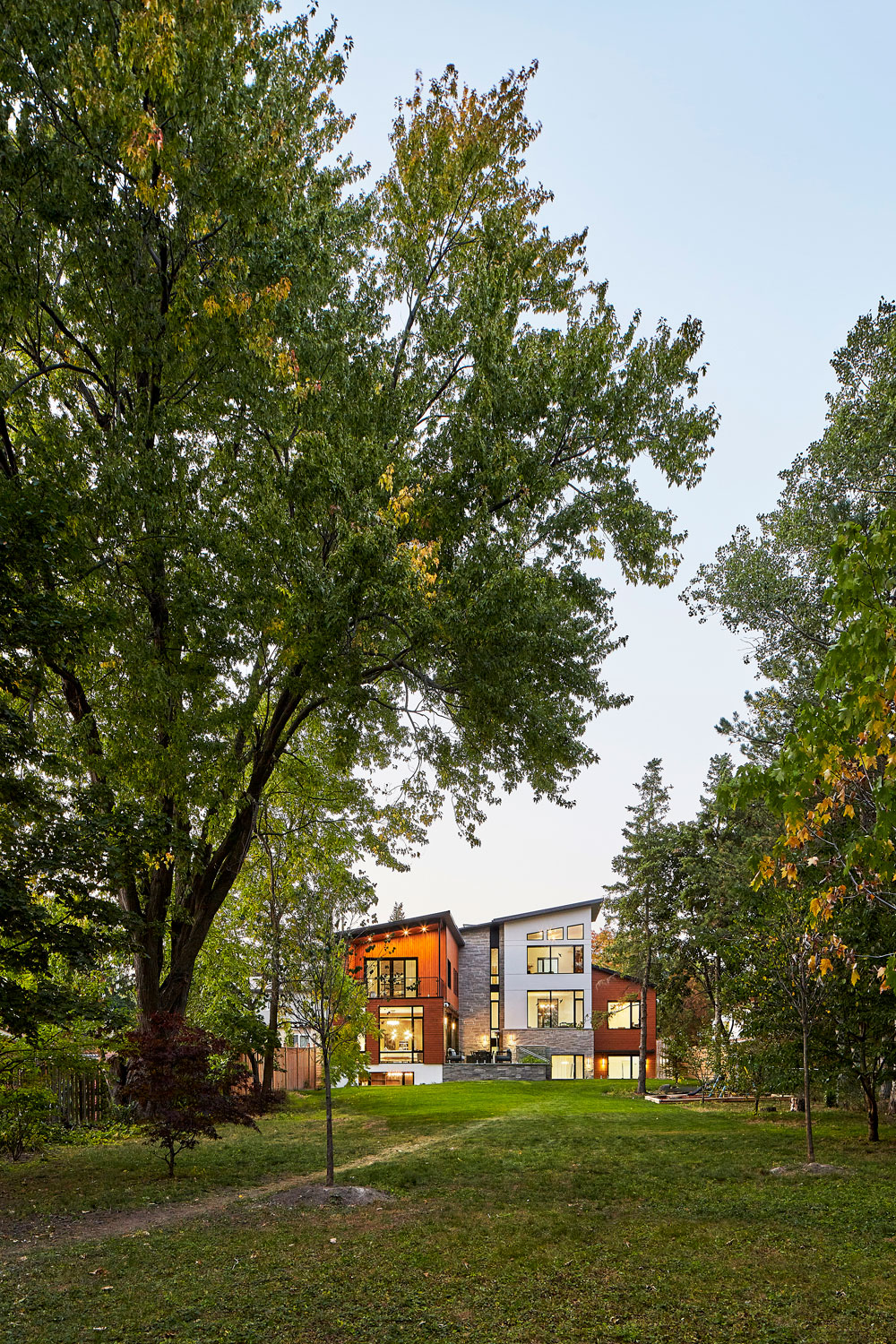 This group of extended family dreamed of a luxurious modern home that would offer private spaces for each branch of the family, shared spaces they could all enjoy, and resources (a spa-like indoor pool and sauna) they might not otherwise splash out for.