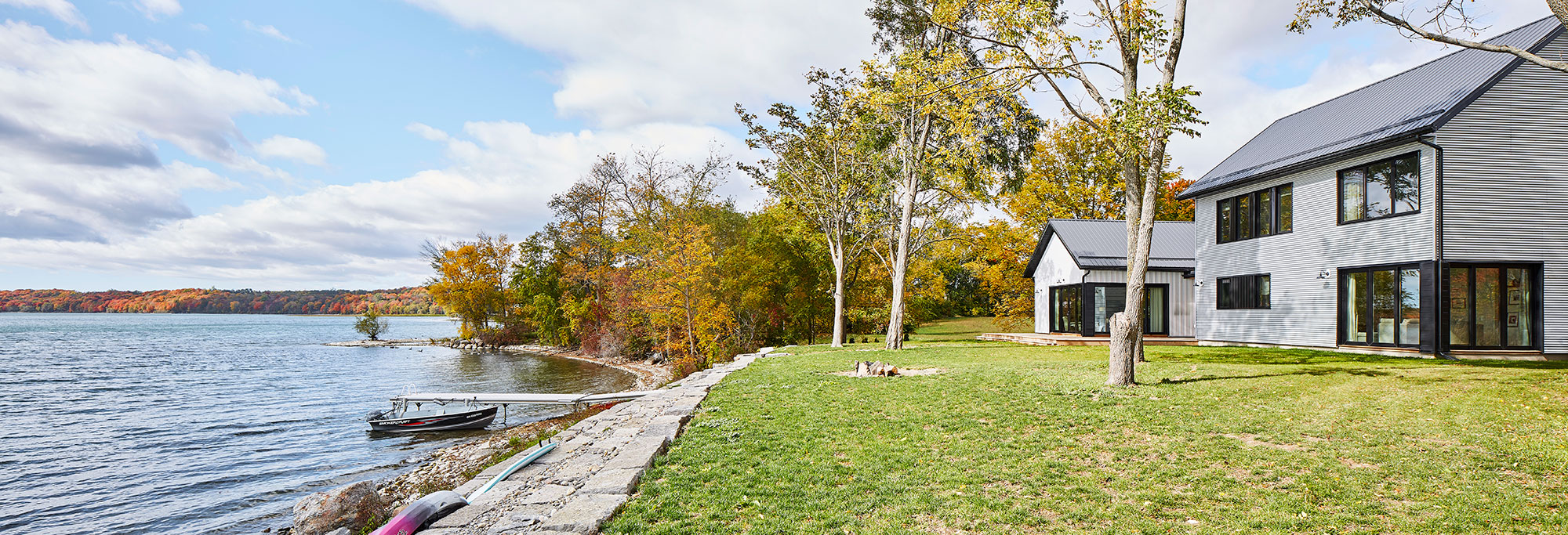 Smith Bay House, located on a flat stretch of land just a stone’s throw from the water, is an embodiment of serenity and style. A young Toronto family dreamed of a new sustainable home in the countryside, and Smith Bay House delivers that getaway. The scenic Prince Edward County property offers tranquility with its uninterrupted views of the calm bay, well removed from the fuss and hurry of city life.